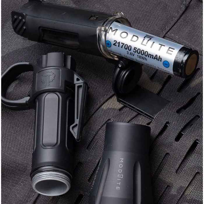 CELLVAULT-21 BATTERY STORAGE FOR 21700 AND STREAMLIGHT SL-B50 Protect your spare 21700 battery while keeping it immediately accessible with the CellVault-21 Rechargeable Battery Storage. Premium batteries require protection from physical and environmental damage but need to remain accessible to keep advanced tactical lights running at full power. The CellVault-21 Rechargeable Battery Storage provides the same feature set as our popular CellVault-18 including dual-wall construction & side viewing windows but adds a larger capacity and an upgraded latch that allows for easy installation, especially on tight MOLLE/PALS webbing. FEATURES: Holds one 21700 Rechargeable Battery Holds one Streamlight SL-B50 Battery (with foam removed) Waterproof O-ring seal rated to IPX7 at 2 meters for 30+ minutes Secure metal latch seals and attaches the CellVault-21 to gear Silicone foam shock absorber/noise silencer Clear side windows allow for gear status checks Slim profile: less than 1 MOLLE/PALS column wide for easy integration into existing gear configurations Detachable latch installs easily on all MOLLE and can be backed up with the included security pin Designed and manufactured in the USA INSTALLATION: Unlock the bottom latch and open the CellVault-21. Press the release tab with a screwdriver or similar tool to release the latch from the back strap. Insert the back strap through the MOLLE/PALS webbing. Align the side tabs and snap the latch back into the back strap. Install additional security pin through both the latch and back strap if necessary. Verify foam shock absorber is at the bottom of the CellVault-21 tube. Insert battery with the positive (+) terminal towards the foam at the bottom. Close the latch, making sure no material is caught in the tube/cap interface.