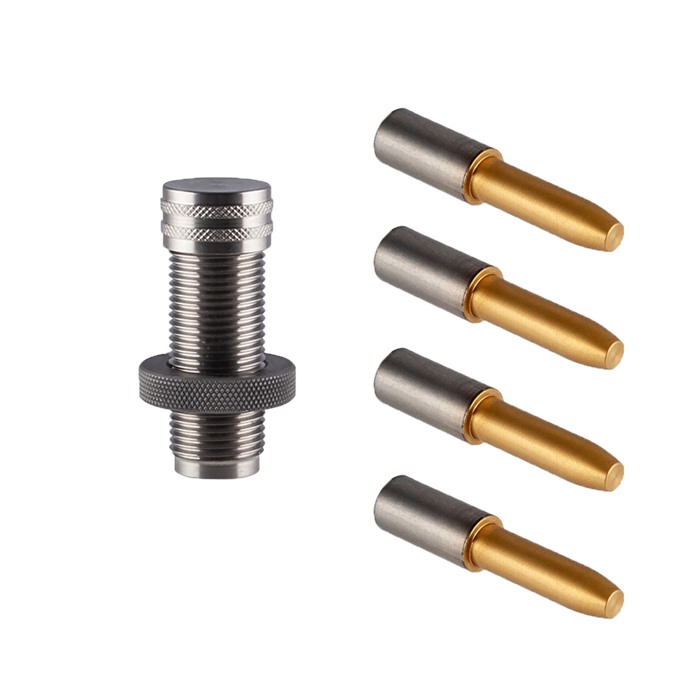 Das TIN Coated Expander Mandrel Kit von SINCLAIR INTERNATIONAL bietet dir ebenfalls unser beliebtes Expander Die zusammen mit den am häufigsten verwendeten TiN beschichteten Expander Mandrels. Diese sind 0.001” unter dem Geschossdurchmesser dimensioniert und ebenfalls präzise aus solidem Hartmetall gefertigt.