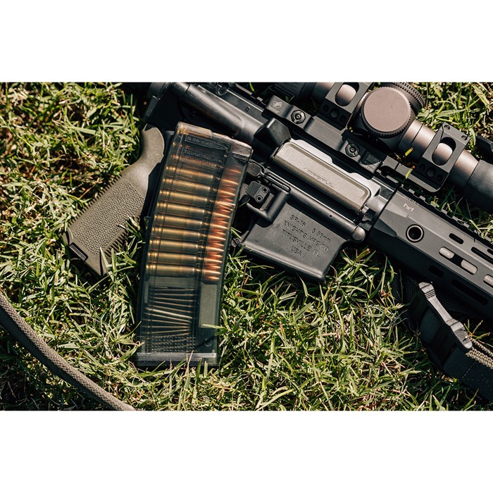Das MAGPUL® TMAG® GEN M3 RIFLE MAGAZINE ist ein hochzuverlässiges, durchscheinendes Magazin für STANAG-kompatible Waffen, die im Kaliber 5.56x45 NATO/.223 Remington geladen sind. Es ist aus einem durchsichtigen Material mit einem ODG/Srauch-Farbton gefertigt, das dir die Sichtbarkeit bietet, um verschiedene Munitionsarten sowie die Anzahl der Patronen zu überprüfen.