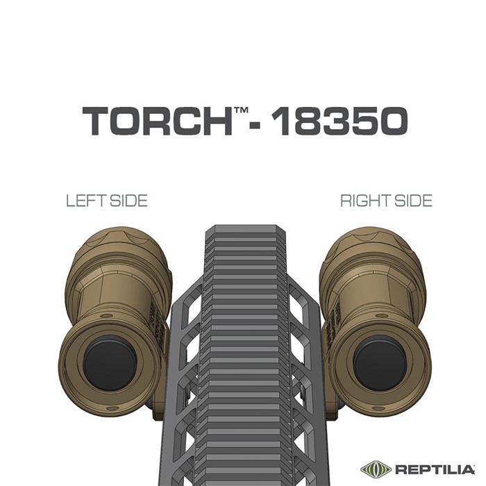 Introducing the TORCH™ 18350 Light Body with Integral M-LOK® Mount. Machined from aircraft grade billet aluminum with Milspec Type III Hardcoat Anodized finish, the TORCH is optimized for use with the ATPIAL/PEQ 15, NGAL, and other top-mounted aiming laser devices. Featuring an integral uni-body M-LOK interface it is not only low profile, but provides the most robust M-LOK weapon light mounting solution on the market today. Available immediately in both left and right hand variants, the TORCH 18350 is compatible with Modlite Systems bezels and tail caps as well as Surefire KE2-DF bezel and tail caps and pressure switch caps. The TORCH 18350 is available in MIL-STD Type III, Class 2, hard anodize black or Tobacco.