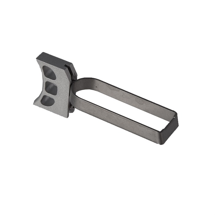 - Die Aluminium-Schuhe des Tri-Cav sind in der Höhe übergroß, was eine Anpassung an die individuelle Pistole ermöglicht.