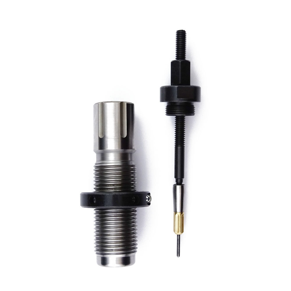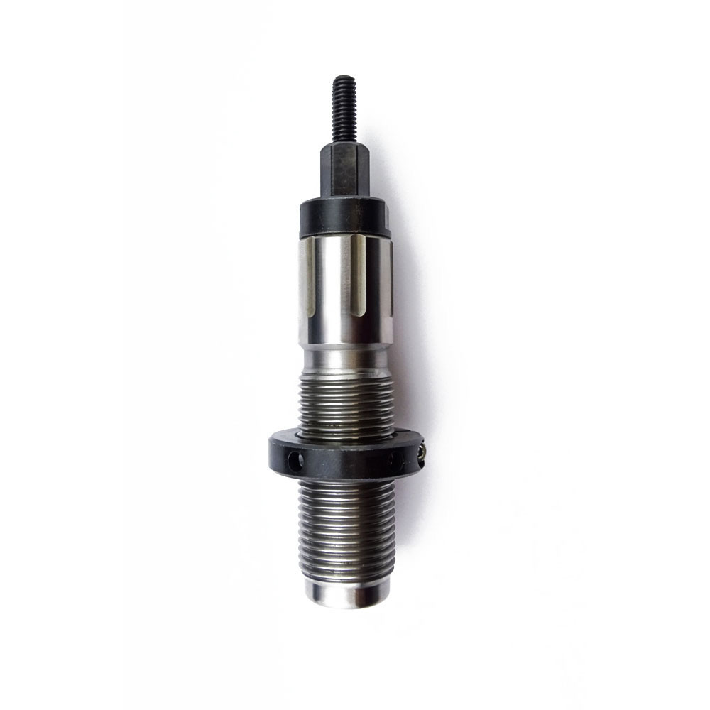 Die Führungsbuchse hat die interne Kontur der Patronenkammer, um die Patrone optimal zu umschließen. Sowohl die Führungsbuchse als auch der Körper dieser Wiederlade-Dies sind perfekt aufeinander abgestimmt, um eine exakte axiale Ausrichtung der Patrone während des Größenprozesses zu gewährleisten.