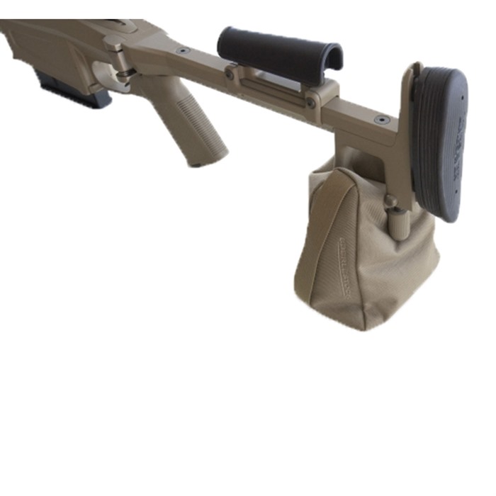 Dieses einfache System ermöglicht eine unendliche Bandbreite an feinen Höhenänderungen, von fast bodennah bis zu 5 ½ Zoll. Hergestellt aus 1000 Denier Nylon, mit 25 mm Gurtbändern an drei Seiten. Du kannst diese verwenden, um ihn an deinem Rucksack oder deiner Schießtasche aufzuhängen oder ihn einfach über den Lauf deines Gewehrs zu werfen, wenn du dich schnell bewegen musst.