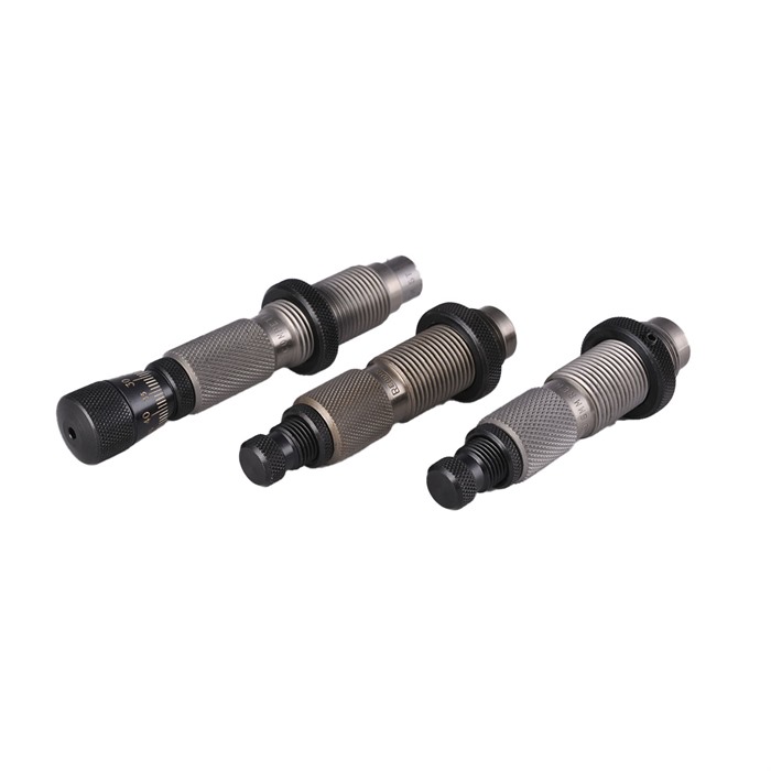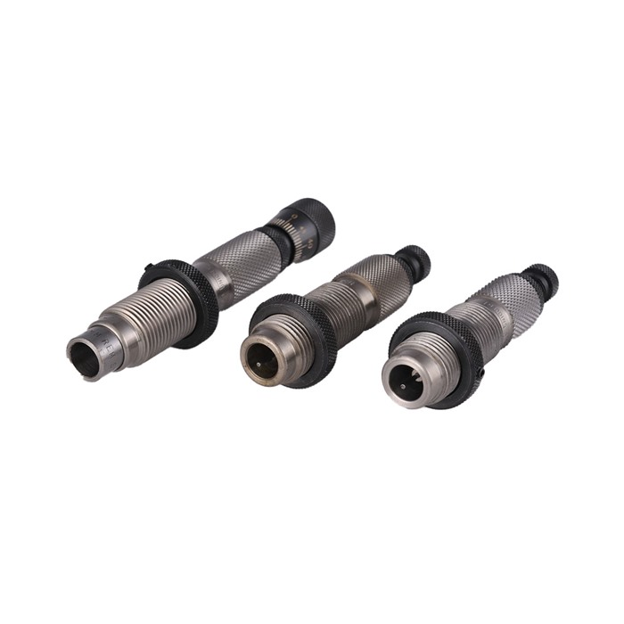 Das Set besteht aus einem Type S Bushing Full Die, einem Type S Bushing Neck Die und der unvergleichlichen Redding Competition Seating Die. Alle Type-S Dies nutzen ein austauschbares Bushing, um den Durchmesser und die Spannung des Halses auf einen Wert von 0,001” zu steuern. Die Bushings sind in gehärtetem Stahl erhältlich und auch mit einer TIN (Titanium Nitride) Beschichtung für noch bessere Gleiteigenschaften.