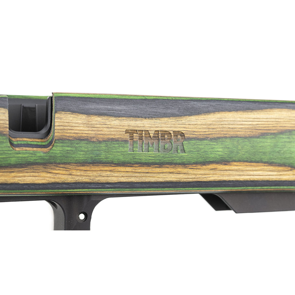 The MDT Timbr Frontier has been developed to provide the look and feel of a traditional stock while incorporating the precision and repeatability of the modern V-Block bedding from a chassis. The buttstock and forend are made of Birch hardwood laminate giving every stock a unique wood grain and warm feel. They are then finished with a high-quality clearcoat and attached to the aluminum micro chassis and bottom metal.