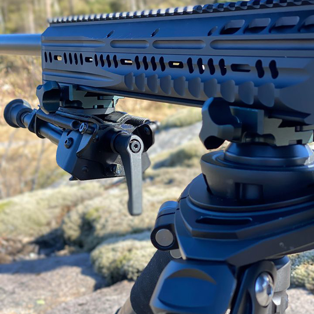 - Nehmen Sie das Harris Zweibein und positionieren Sie den Adapter an der vorgesehenen Stelle.