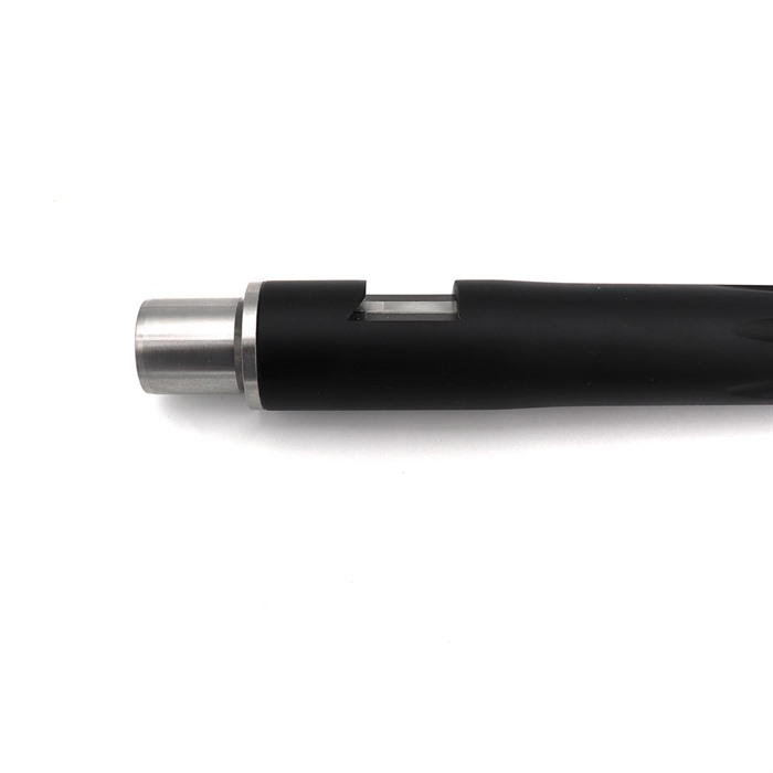 Je nach deinem Empfänger, achte darauf, dass du eventuelle Farbreste im Empfänger-Mortise entfernst. KIDD empfiehlt die Verwendung einer Anti-Seize-Verbindung, um die Installation zu erleichtern. Anti-Seize ist in Autoteilegeschäften leicht erhältlich. Es ist am besten, wenn du den Lauf-Tenon zuerst in den Empfänger-Mortise einführst, dann drehst du ihn um und klopfst mit einem Gummihammer auf die Rückseite des Empfängers. Achte darauf, dass du den Auszieher-Schlitz während der Installation des Laufs ausrichtest.