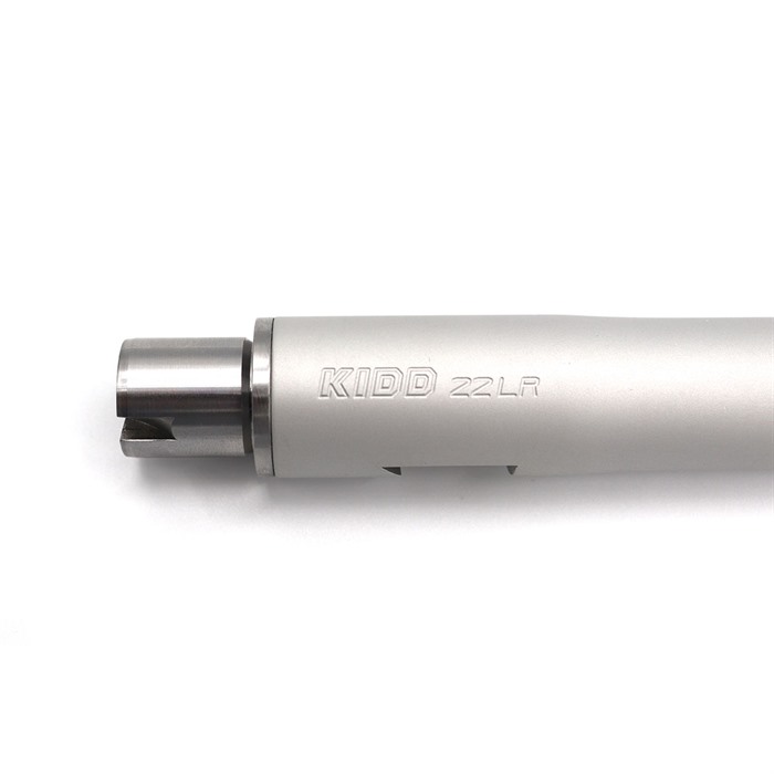 Another superb aftermarket barrel for the .22LR by Kidd Innovative Design. This Ultra Lightweight Fluted Bull Barrel weighs just over a pound and yet is a great shooter! KIDD has seen a niche in their barrel market for a much lighter weight barrel and believe their customers will benefit from our durable steel barrel anchored by a stainless-steel breech and stainless-steel muzzle design. As with all our barrels the bore is hand lapped here at KIDD. This will be great for people who don't want to tote around a heavy rifle but still want a high-quality product. At 1.25 pounds and 16 1/4 inches in length this is their lightest rifle barrel. KIDD product testing has resulted in 1/2"" groups at 50 yards. Though, they don't guarantee this barrel to group at that rate. A threaded muzzle is an option on the barrel and their threading is 1/2""-28 and is available with a protective cap. FEATURES: Aftermarket replacement barrel for the 10/22 16 1/4 inches in length 1 1/4 pounds .870"" diameter "High cool factor" Fluting Stainless Steel Breech and Muzzle Perfect for varmint hunting or fun target Stainless Steel Muzzle threading option Bull barrel stock channel Barrel installation: Depending on your receiver, if there is paint build up in the receiver mortise be sure to scrape that out. KIDD recommend using an anti-seize compound to assist in installation. Anti-seize is readily available at automotive stores. It is best if you can get the barrel tenon started into the receiver mortise, then turn it over and tap the back of the receiver with a rubber mallet. Be sure to line the extractor slot up as you are installing the barrel. Your barrel is ready to shoot, just run two magazines through it before you really start looking at group size. Do this each time you change brands of ammunition as well. Keep the chamber clean, but don't clean the bore too much you will decrease accuracy. Depending on the ammo, clean the bore around every 500 rounds.
