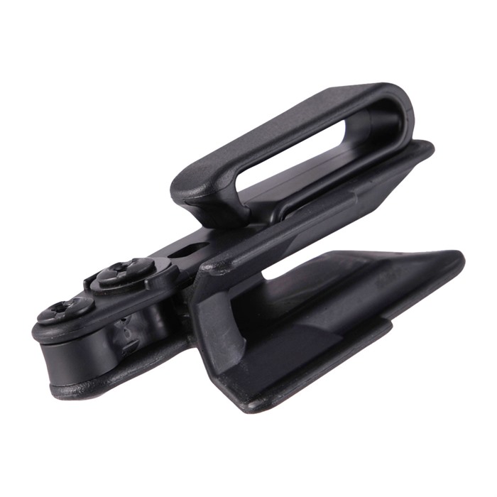 - Ein-Hand-Bereitstellung: Das Holster kann auch entfernt werden, indem du die Nase des Holsters greifst und es abziehst. Dies ermöglicht eine Ein-Hand-Bereitstellung der Waffe, selbst wenn das Tether oder der Befestigungspunkt versagt, um das Holster zu entfernen.