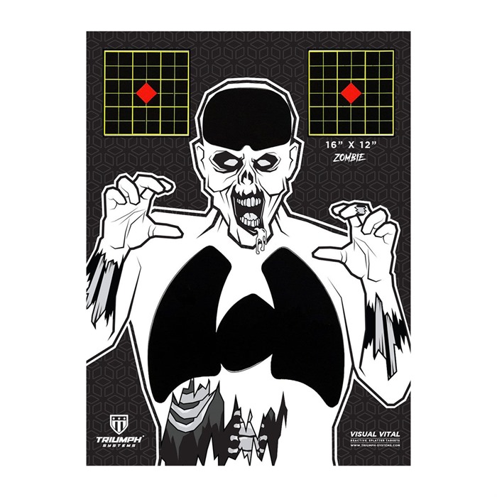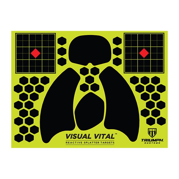 Die Visual Vital Splatter Targets von Triumph Systems sind nicht einfach nur normale Zielscheiben – sie bieten dir gleich 3 Ziele in einem! Du erhältst eine Papierzielscheibe, selbstklebende Splatter-Aufkleber für die Spaß-Schießzonen und Splatter-Pasties, die du über die Löcher kleben kannst, die du gerade geschossen hast.