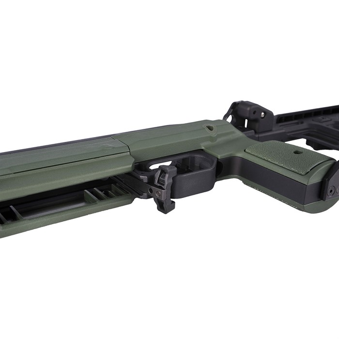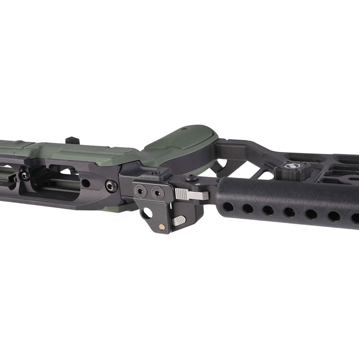 Direkt nach dem Auspacken kannst du AICS-Magazine (nicht im Lieferumfang enthalten) in deinem Gewehr verwenden, ohne spezielles Bottom Metal. Zahlreiche Zubehörteile können an den vielen Befestigungspunkten angebracht werden, darunter: