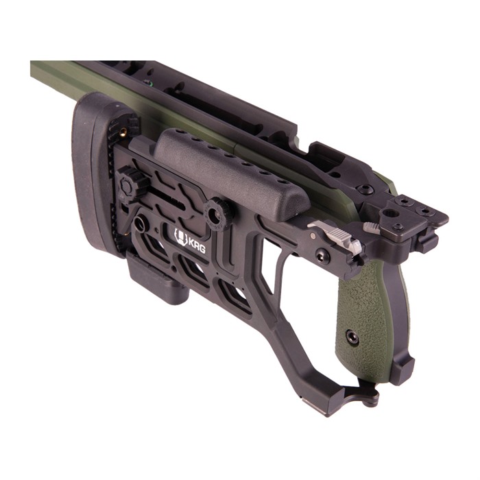 Die modularen Griffplatten von KRG ermöglichen es dir, die Passform des Schaftes an deine Hand anzupassen, was in Kombination mit den anderen Anpassungen einen Schaft ergibt, der genau so eingerichtet ist, wie du es benötigst. Die neueste Generation (6) bietet einen neuen Längenverstellmechanismus, der etwas schlanker ist als bei früheren Generationen und schnellere Anpassungen ermöglicht.