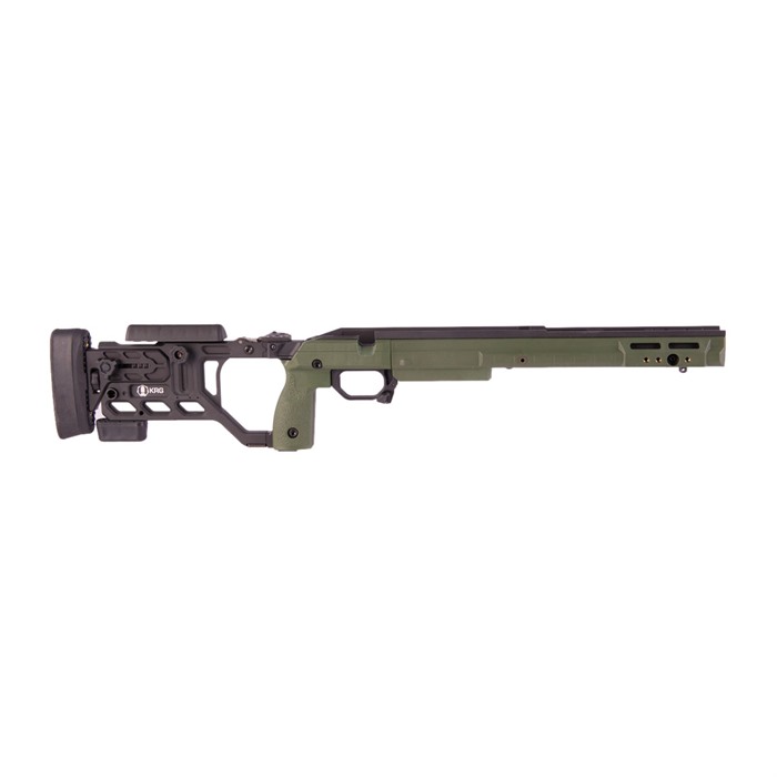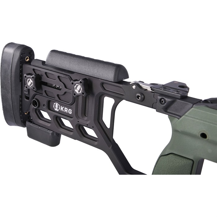 The KRG Whiskey-3 Chassis (W3C) is one of the premier chassis available for your bolt action precision rifle. The W3C combines precise aluminum bedding with tool-less adjustments, durability, and excellent ergonomics. Right out of the box it allows the use of AICS style magazines (not included) in your rifle without any special bottom metal. Numerous types of accessories can be added to the many attachment points, including handstops, sling mounts, rails, bipods, monopods, and more. KRG’s modular grip panels allow the shooter to tailor the fit of the stock to his/her hand which, combined with the other adjustments, yield a stock set up exactly as it needs to be for that particular shooter. The latest Generation (6) features a new length-of-pull locking mechanism that is a bit more streamlined than previous generations and allows for faster adjustments. Remington 700 long action chassis takes AICS pattern 3.850" length magazines.