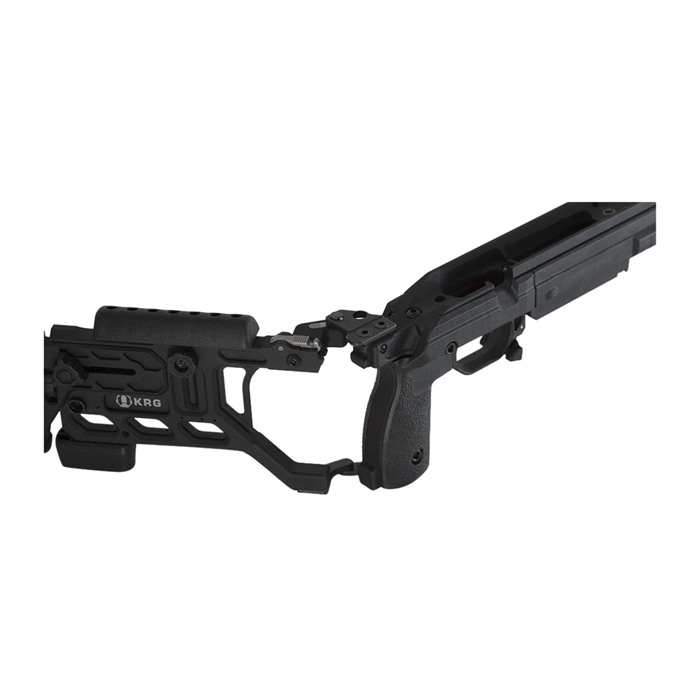 The KRG Whiskey-3 Chassis (W3C) is one of the premier chassis available for your bolt action precision rifle. The W3C combines precise aluminum bedding with tool-less adjustments, durability, and excellent ergonomics. Right out of the box it allows the use of AICS style magazines (not included) in your rifle without any special bottom metal. Numerous types of accessories can be added to the many attachment points, including handstops, sling mounts, rails, bipods, monopods, and more. KRG’s modular grip panels allow the shooter to tailor the fit of the stock to his/her hand which, combined with the other adjustments, yield a stock set up exactly as it needs to be for that particular shooter. The latest Generation (6) features a new length-of-pull locking mechanism that is a bit more streamlined than previous generations and allows for faster adjustments.