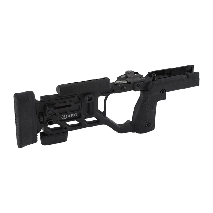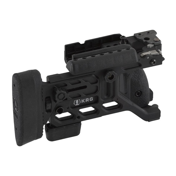 KRG's fixed and folding stocks for your TRG-22/42 are a robust and ergonomic upgrade for your fine Sako rifle. It replaces the back half of your current TRG-22/42 stock, you keep your forend, chassis, and trigger components. It is fully tool-less adjustable for length-of-pull, cheek height, recoil pad vertical position and cant to provide you the comfort that is close but just isn't quite there with standard TRG. The latch mechanism for the folding stock features a proven spring loaded tapered detent design to provide a tight lockup throughout the life of the stock and ambi QD sling points are included.