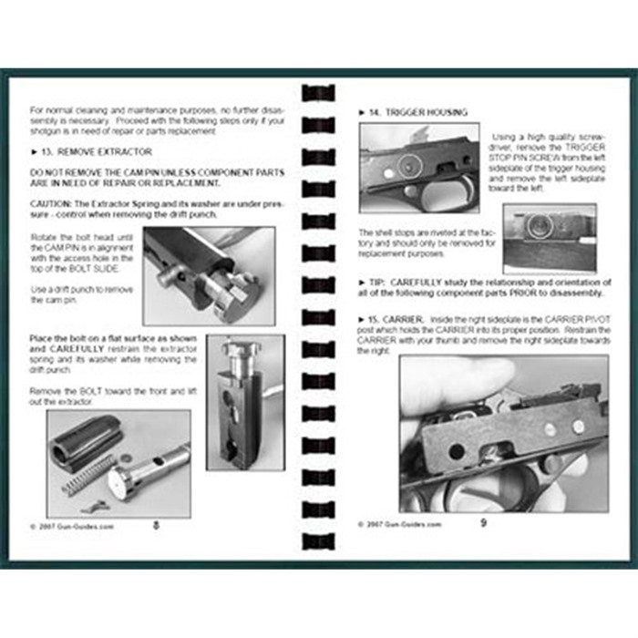 Der WINCHESTER 1300 & 1200 Shotguns Assembly and Disassembly Guide deckt alles ab, was du über diese Waffen wissen musst. Er ist auf hochwertigem, hellem, weißen Papier gedruckt und verfügt über einen strapazierfähigen Kartonumschlag. Die Spiralbindung sorgt dafür, dass das Buch flach auf Arbeitsflächen liegt und die Graustufenbilder helfen dir, die Waffen besser zu verstehen.