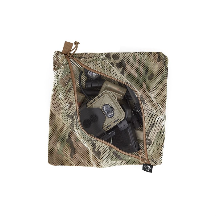 Die WONTONS bestehen aus einem Mesh-Material, das sie leicht macht und es ermöglicht, dass die Gegenstände schnell trocknen. Die Taschen sind nicht wasserdicht, sondern wurden entwickelt, um Gegenstände innerhalb größerer Einsatzprofile wie Fahrzeuge oder Kit-Bags zu organisieren.