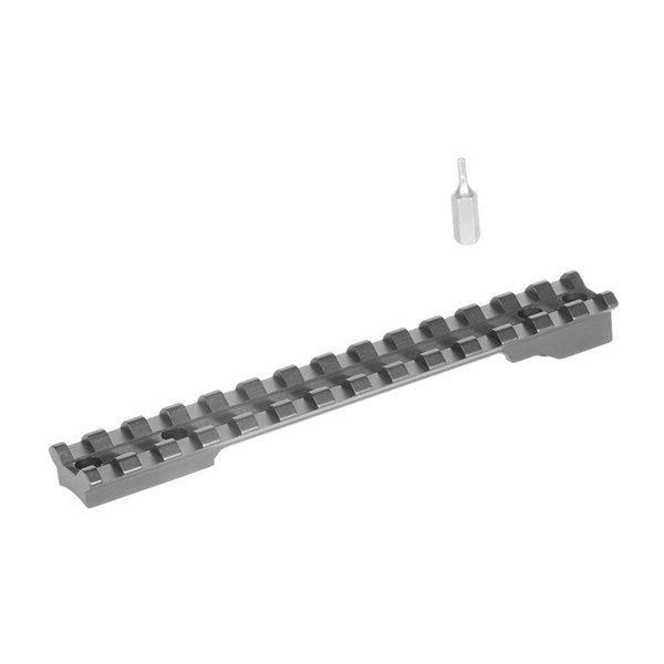 Um diese Halterung zu nutzen, musst du dein Empfänger bohren und gewindeschneiden. Die Picatinny-Kreuzschlitze verlaufen über die gesamte Länge der Schiene, was dir Flexibilität beim Montieren von Zielfernrohrringen und anderen Zubehörteilen gibt. Der Kanal in der Mitte reduziert die Gesamtmasse der Halterung und sorgt gleichzeitig dafür, dass die Verwendung der werkseitigen Kimme und Korn in vielen Fällen nicht behindert wird.