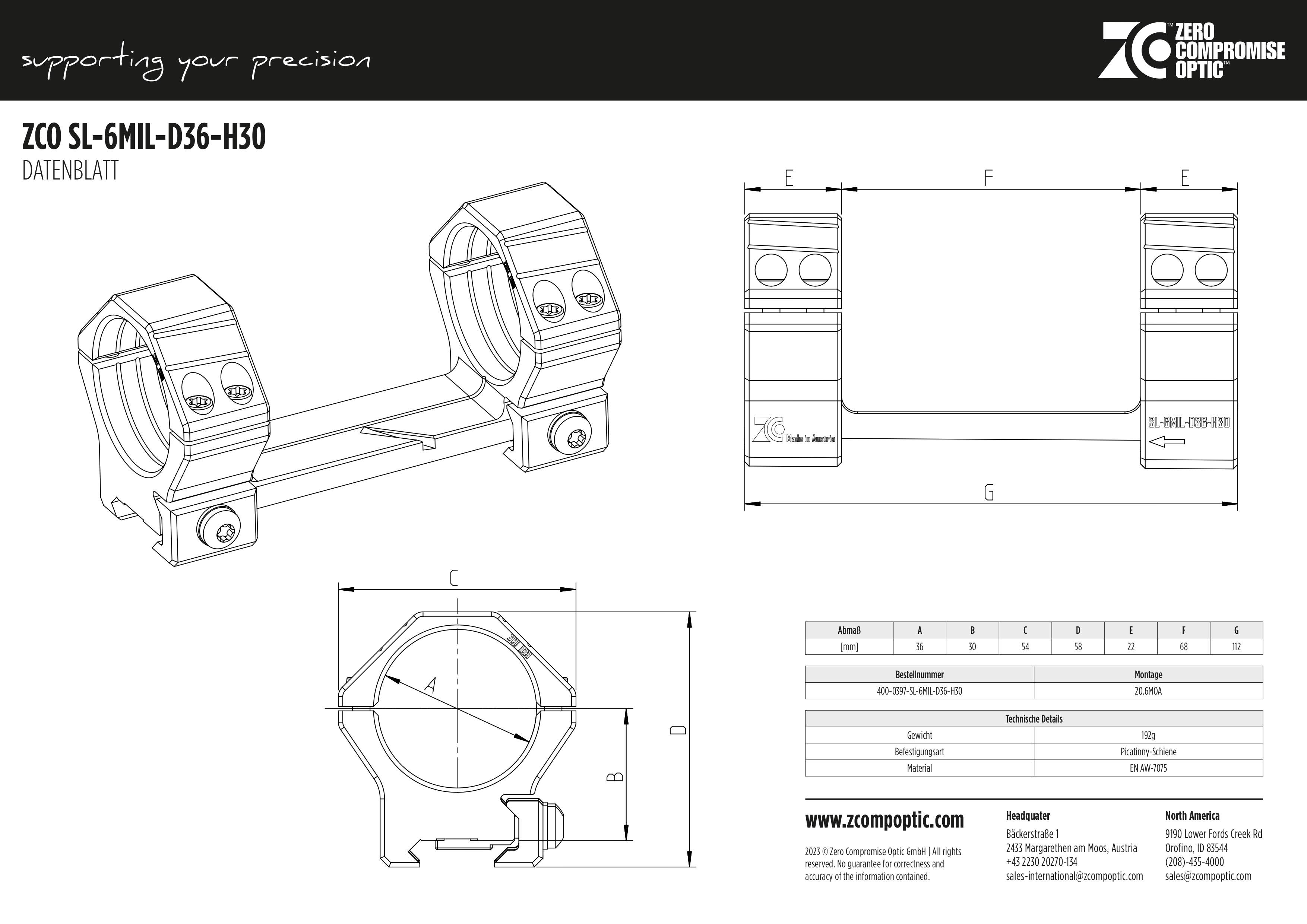 Herzlichen Glückwunsch zum Kauf der ZCO Slimline Montage 6Mil D36H30. Diese Montage wurde entwickelt, um eine stabile und präzise Befestigung für Ihre ZCO Zielfernrohre zu bieten. Bitte lesen Sie diese Sicherheitshinweise sorgfältig durch, um eine sichere und effektive Nutzung zu gewährleisten.